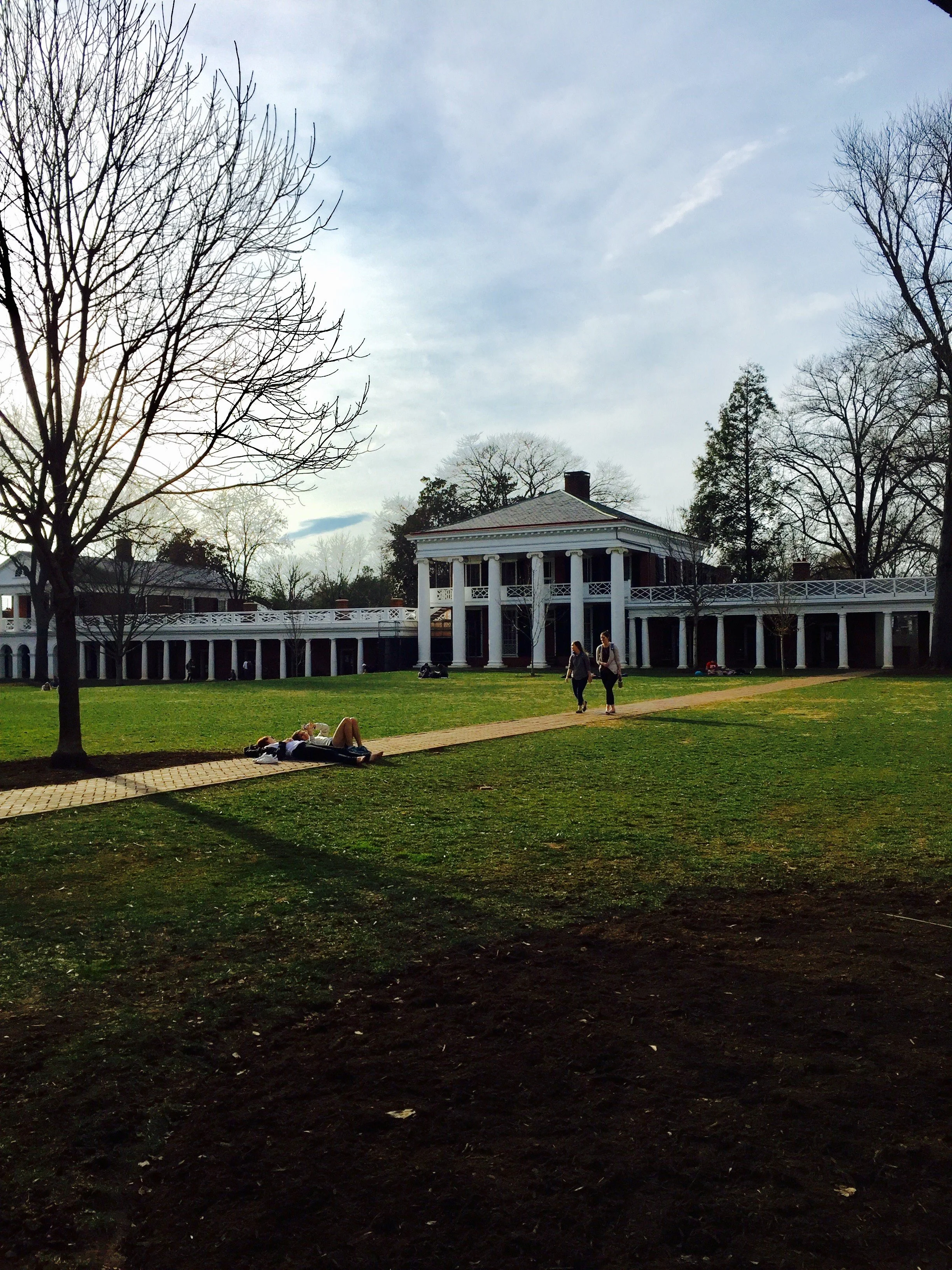 The Lawn! It's part of Thomas Jefferson's "Academical Village" -- right in front of the recently-renovated Rotunda -- and was designed by Jefferson himself. It is actually a UNESCO World Heritage Site (as is his nearby residence: Monticello) and houses ~54 of the most esteemed fourth year students, affectionally called "Lawnies," each year. It's an honor to be a Lawnie, as students who live there are selected based on an application process for having made unselfish service to the university + outstanding achievements in their activities/academics. However, the inside joke is that students who live here also have to trek rather far to use the bathroom... which is not ideal. So while it's central and honorable, there's some "fine print" to consider as well.